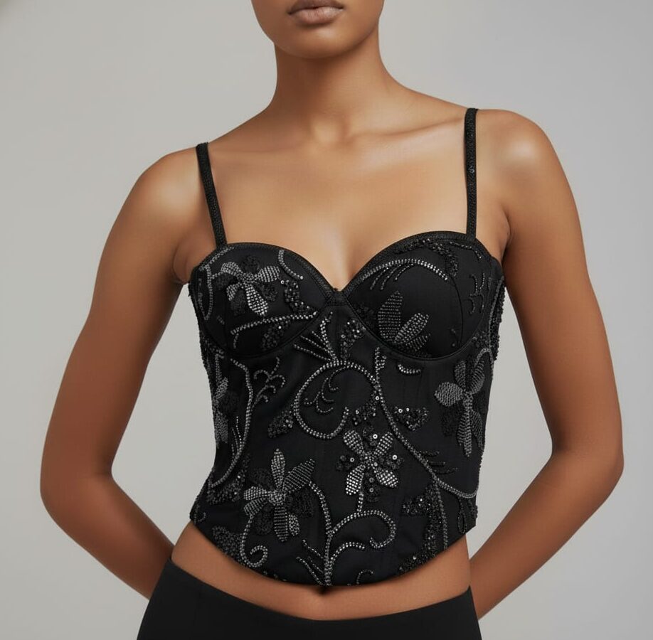 Transform your silhouette with our Midnight Onyx Corset Blouse, where modern structure meets artisanal heritage. Rendered in a deep, rich black, this piece is designed to serve as the sophisticated anchor for any luxury ensemble.