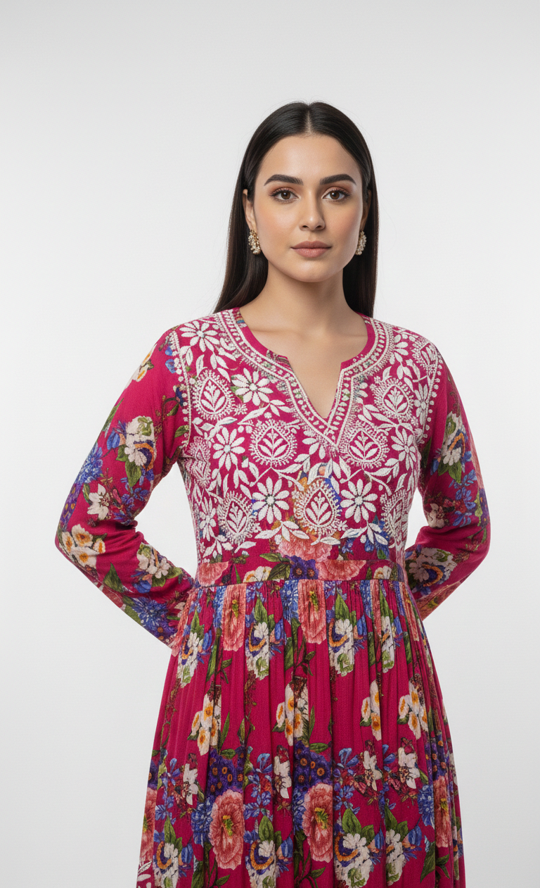 Vintage Rose Lucknowi Long-Kurti